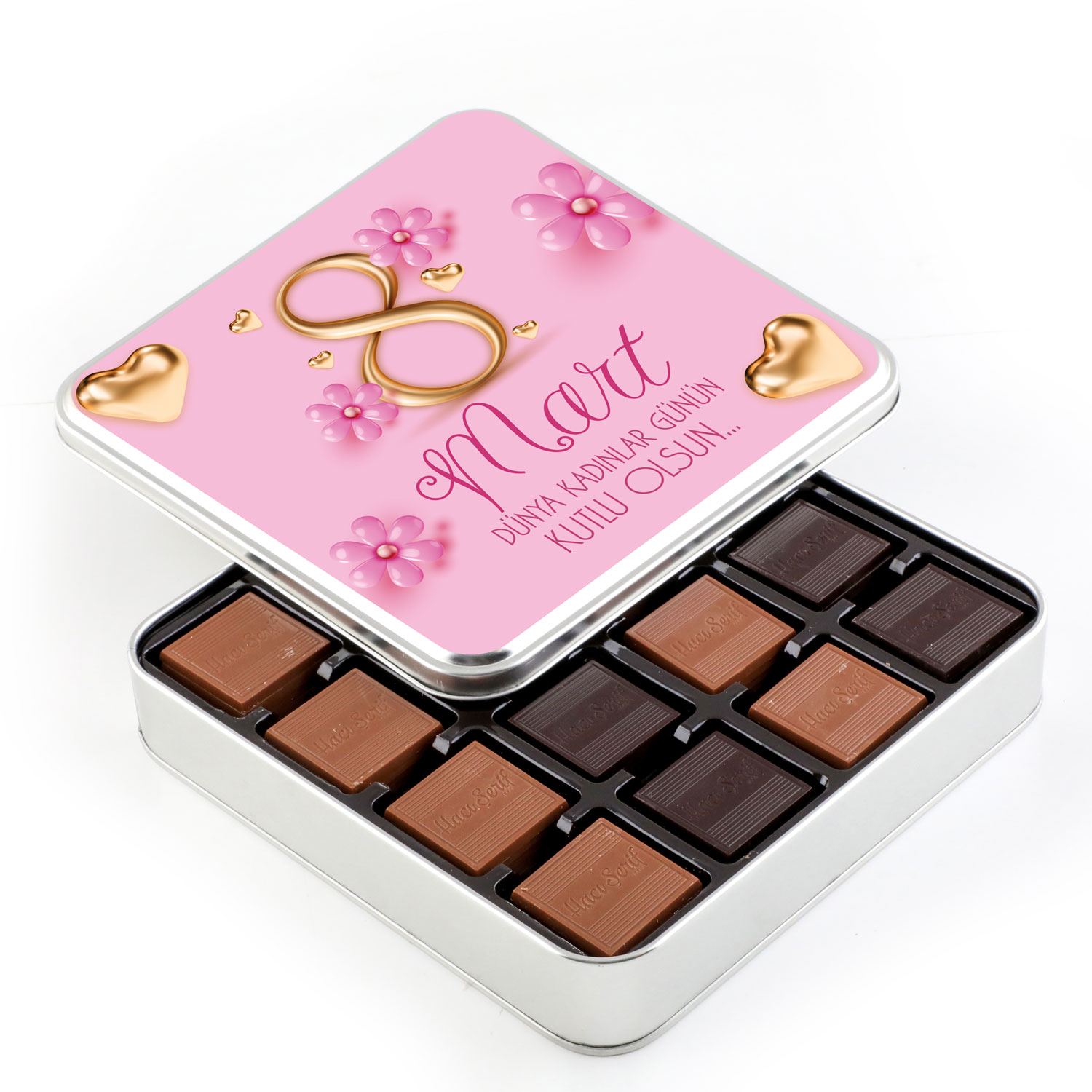 Kadınlar Günü Hediyesi 64 Adet Madlen Çikolata (Metal Kutu)