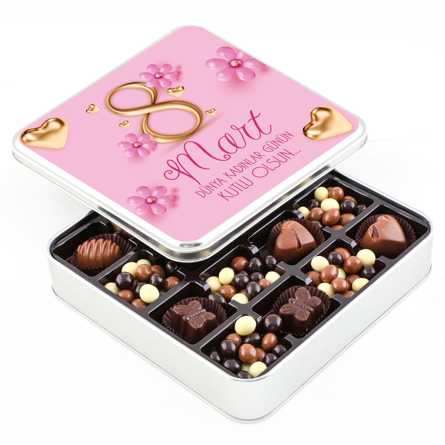 Kadınlar Günü Hediyesi Kahve Drajeli Special Çikolata (Metal Kutu)