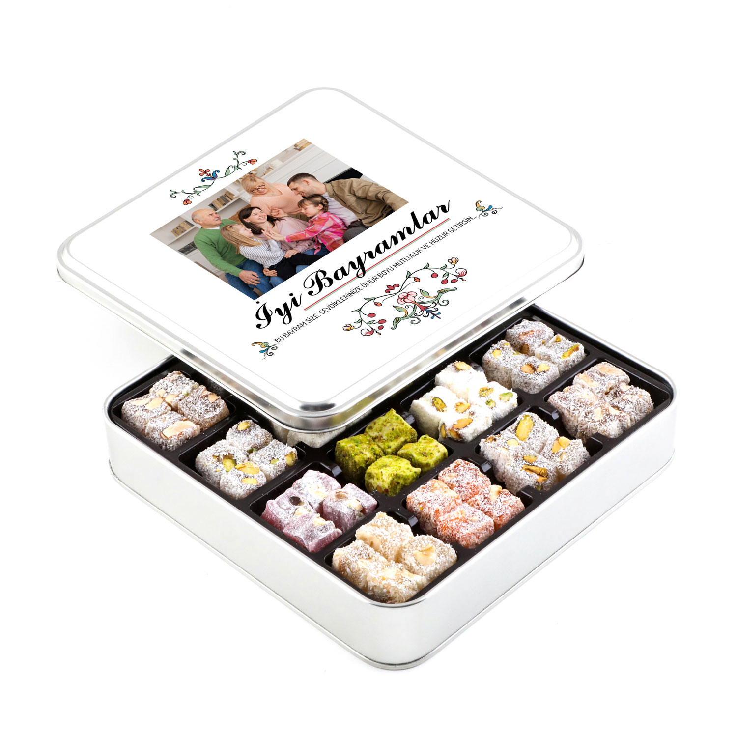 Kendi Fotoğrafınız ile Bayram Hediyesi Karışık Çifte Kavrulmuş Lokum (Metal Kutu)