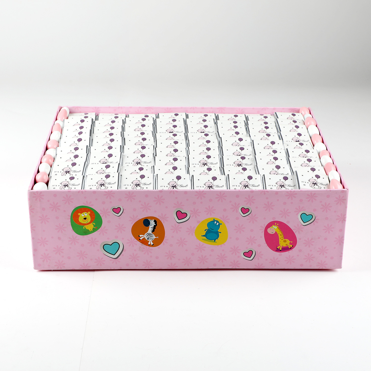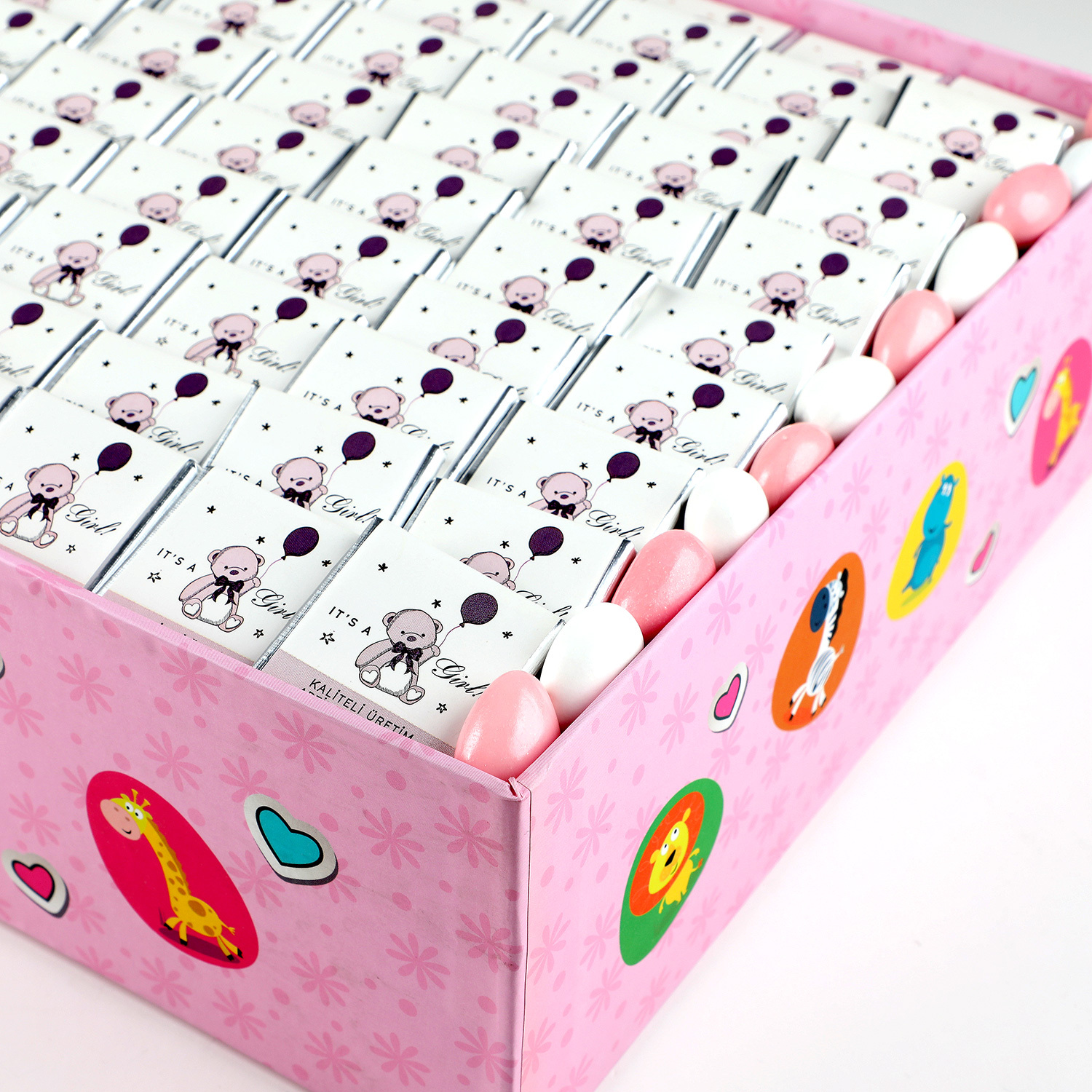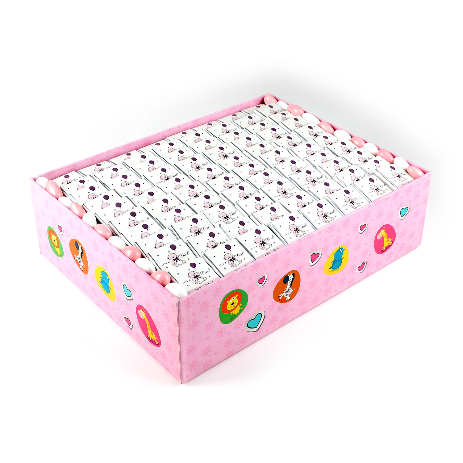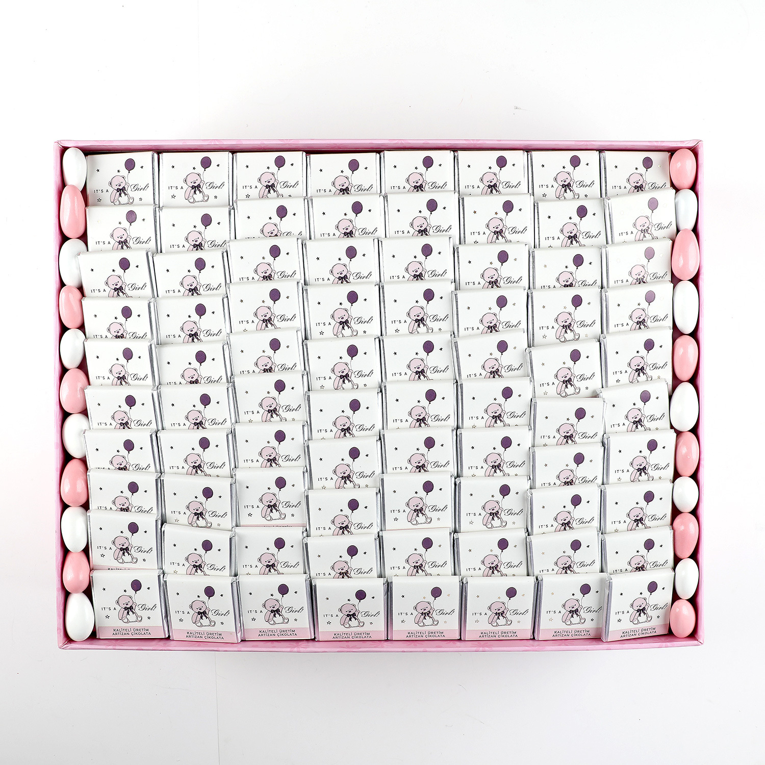 Gelince Haber Verİçerik : 80 adet sütlü madlen çikolata ve 80gr pembe badem draje dekoratif dikey kutusunda muhafazalı olarak gönderilir.