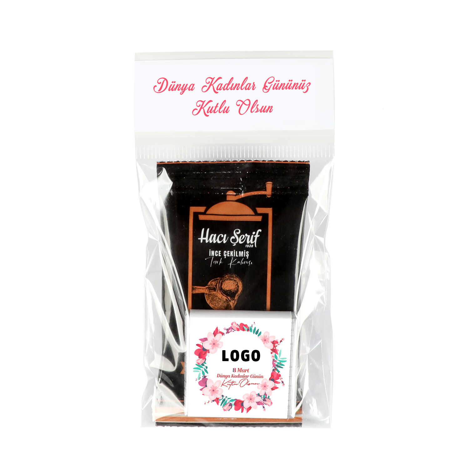 Paket İçerisinde 1 adet sütlü madlen çikolata ve 1 adet tek fincanlık Hacı Şerif Türk kahvesi (6gr) bulunmaktadır.