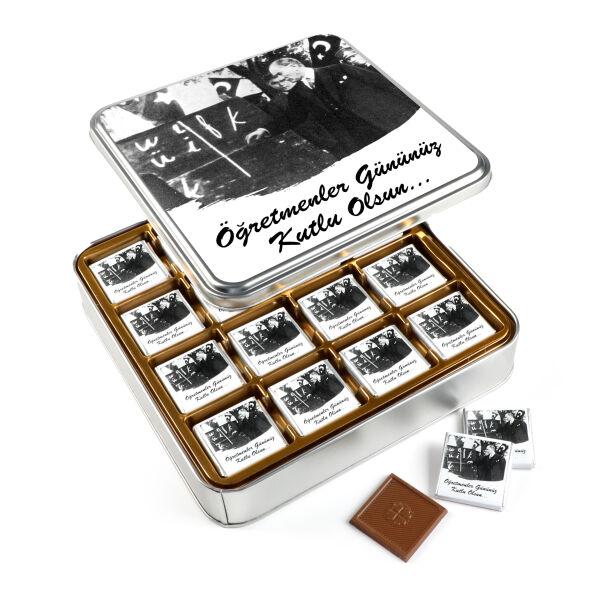 Kapak ve maldlen çikolatalar üzerinde Atatürk fotoğrafı ve "Öğretmenler Gününüz Kutlu Olsun" mesajı bulunmaktadır.