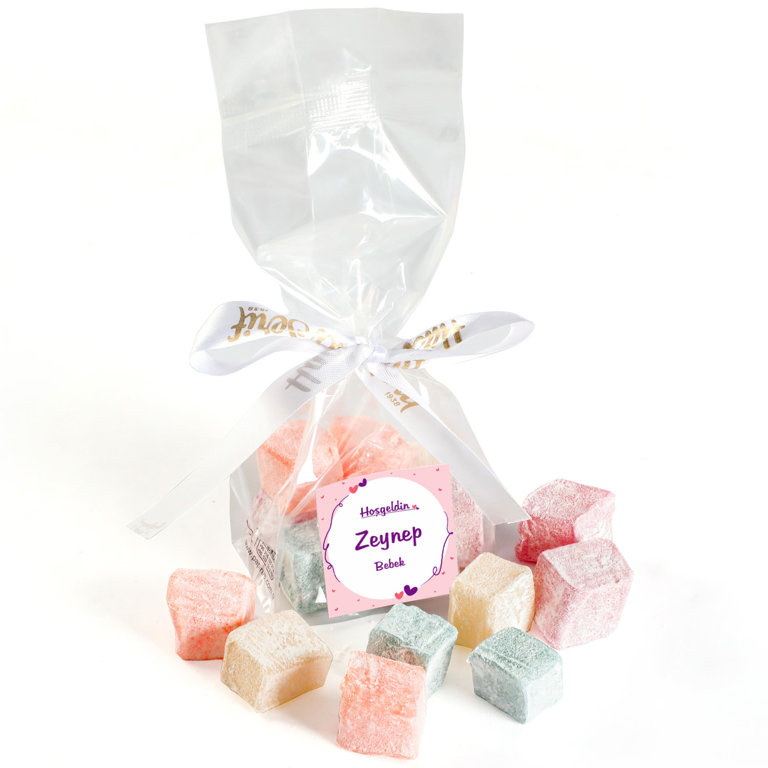 Ürünün Adı: Mini Meyveli Lokum Ürün İçeriği: Şeker, mısır nişastası, limon tuzu ve su'dan imal edilmiştir. Fındık, fıstık, antep fıstığı, ceviz, badem, kaju, hindistan cevizi, sakız, gül suyu, kakao, çikolata, çöven, esans, gıda renklendiricisi, ürünün çeşitlerine ve imalat özelliklerine göre ilave edilmektedir.