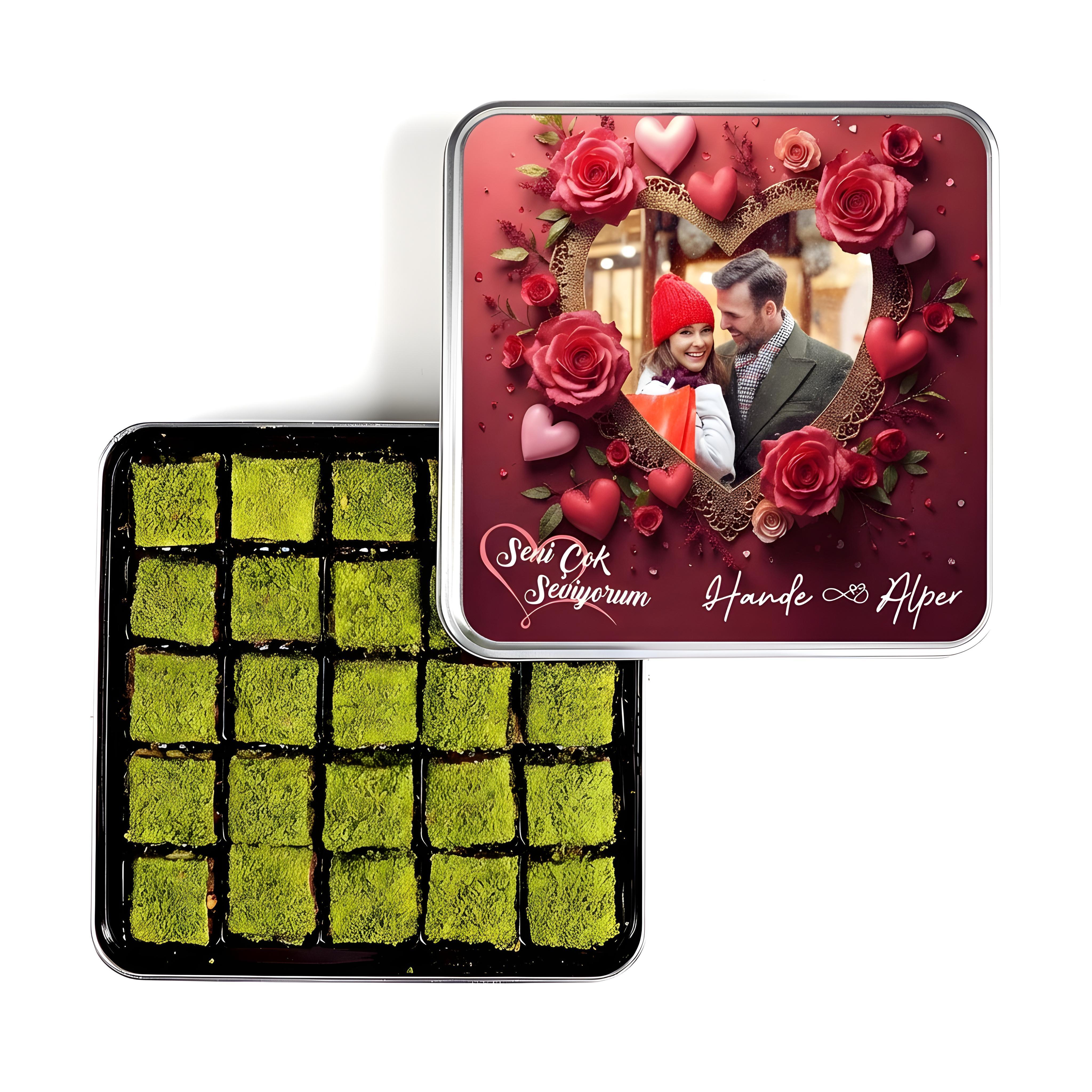 Gelince Haber VerKapak üzerine "Seni Çok Seviyorum" mesajı ile birlikte Göndermiş Olduğunuz Fotoğraf ve isimler Eklenerek Gönderim Yapılır. Fotoğraf ürün resmindeki gibi kalp temalı çalışma içine yerleştirilir.