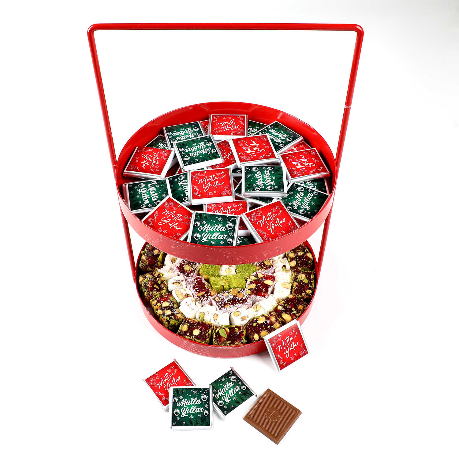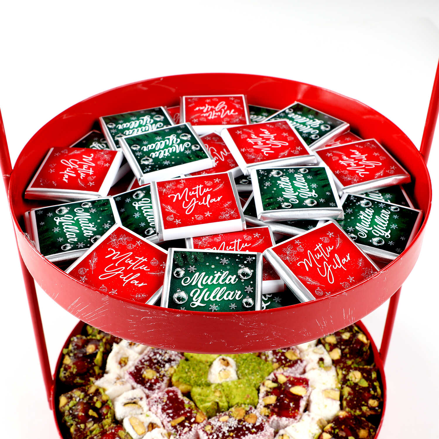 Yılbaşı Hediye Seti - 1 - Çift Katlı Kırmızı Tepside Lezzet Şöleni
