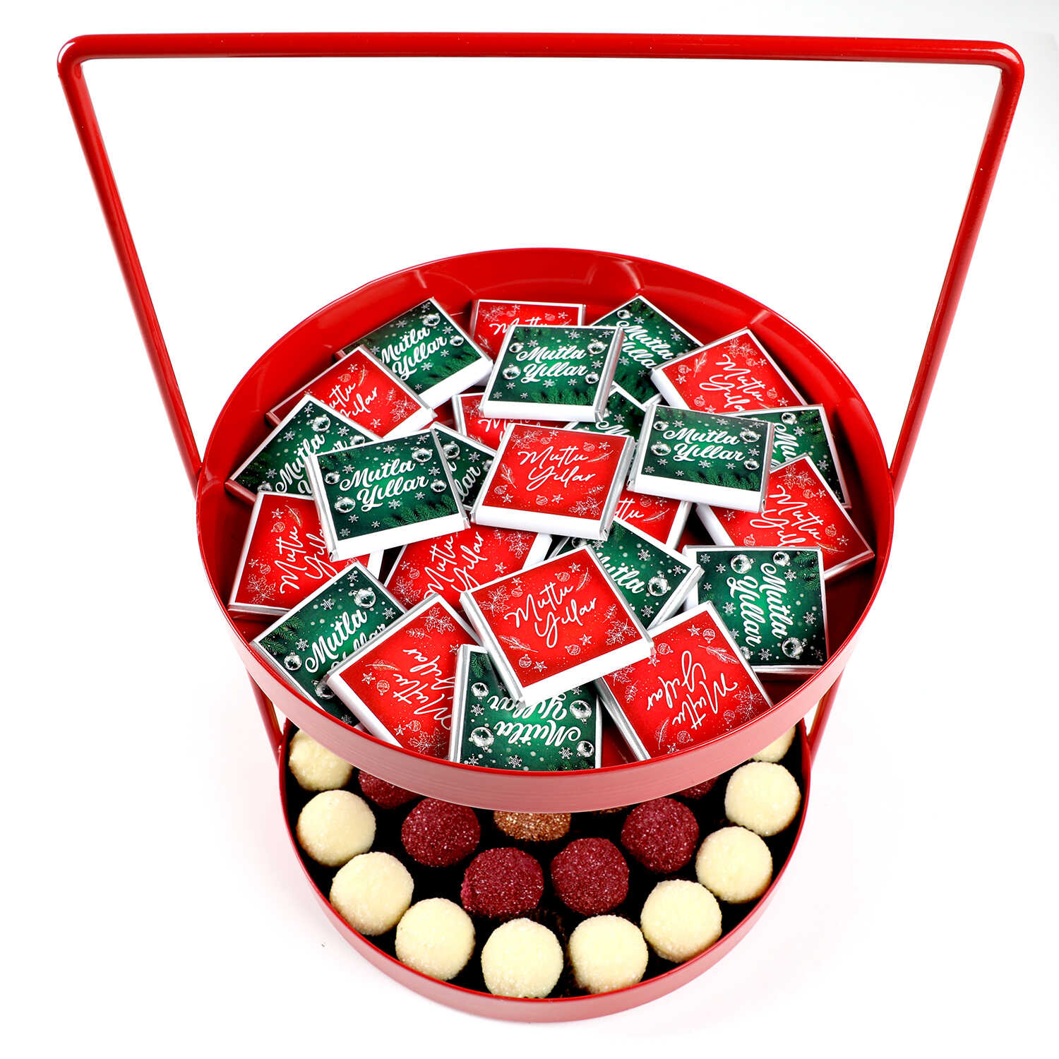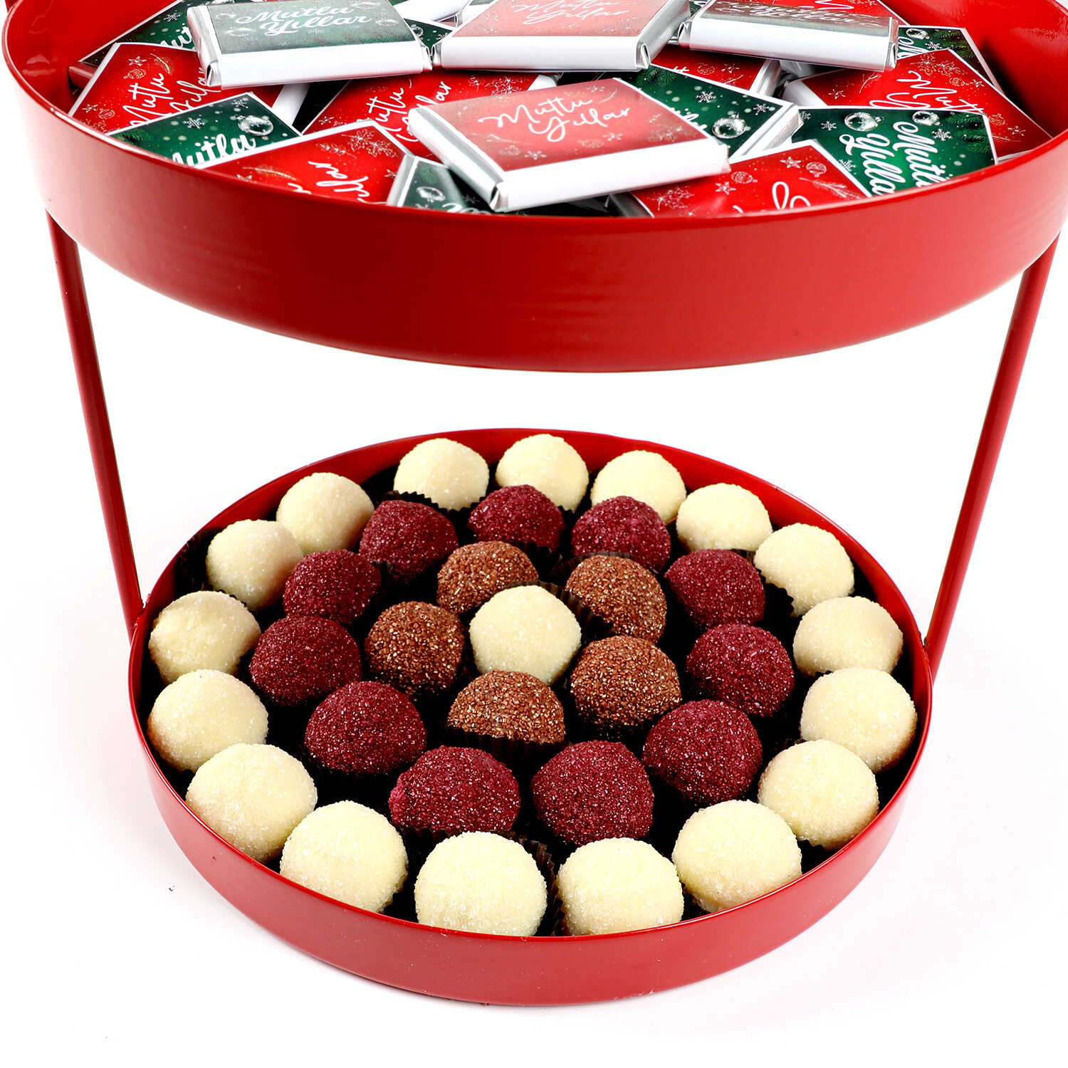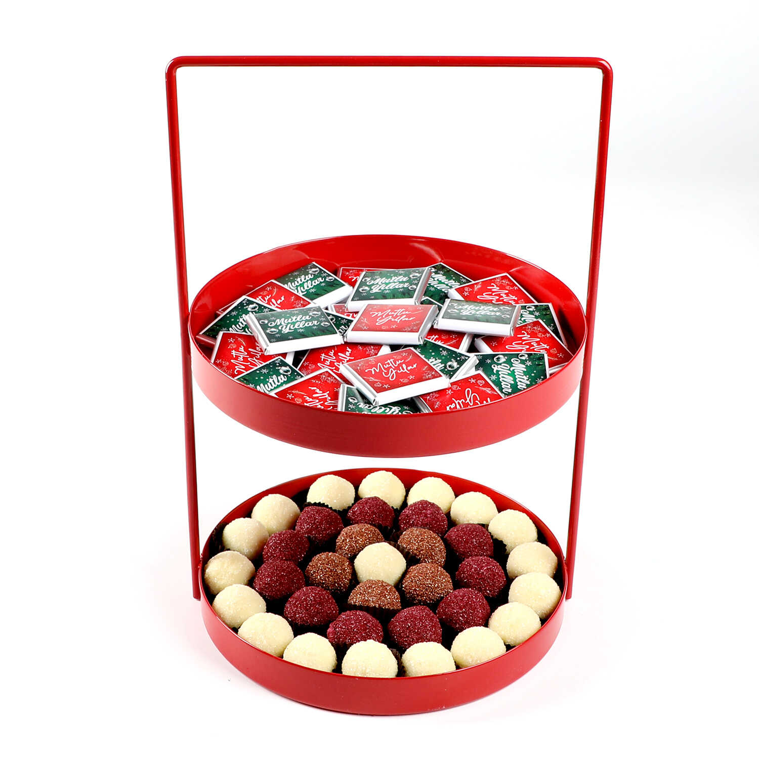 Yılbaşı Hediye Seti - 5 - Çift Katlı Kırmızı Tepside Lezzet Şöleni