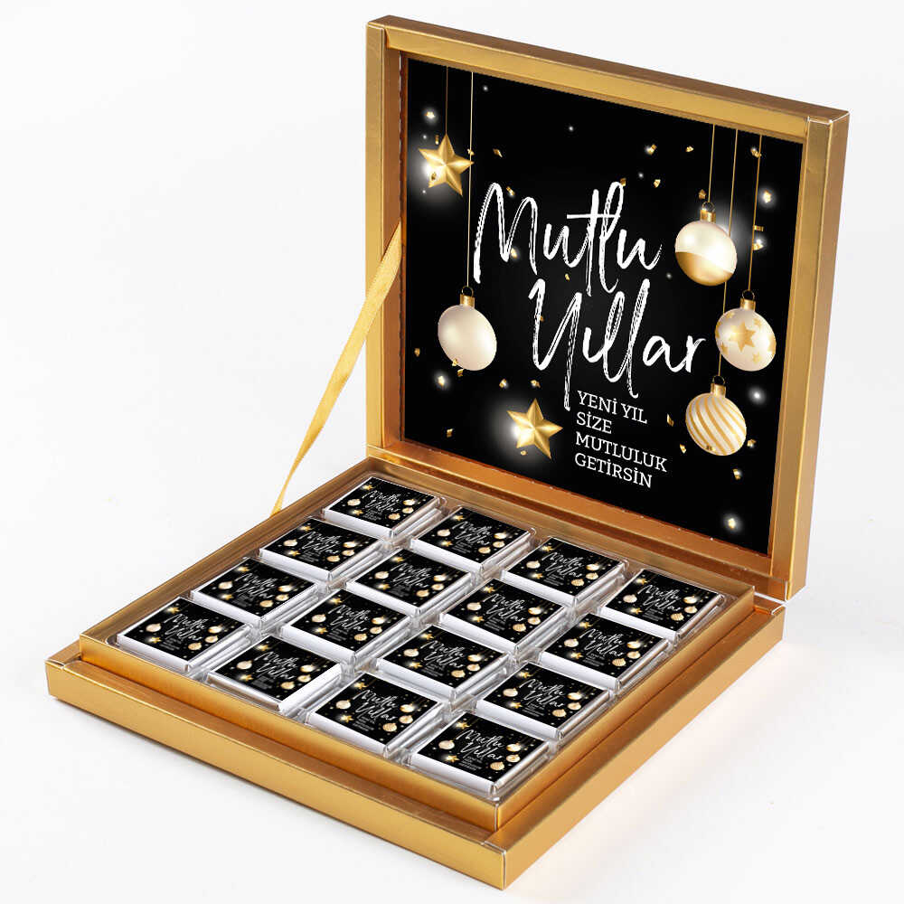 32 adet sütlü madlen çikolata (220gr) üzerine ve kapak içine  "Mutlu Yıllar" mesajı yapıştırılarak Gönderilir.