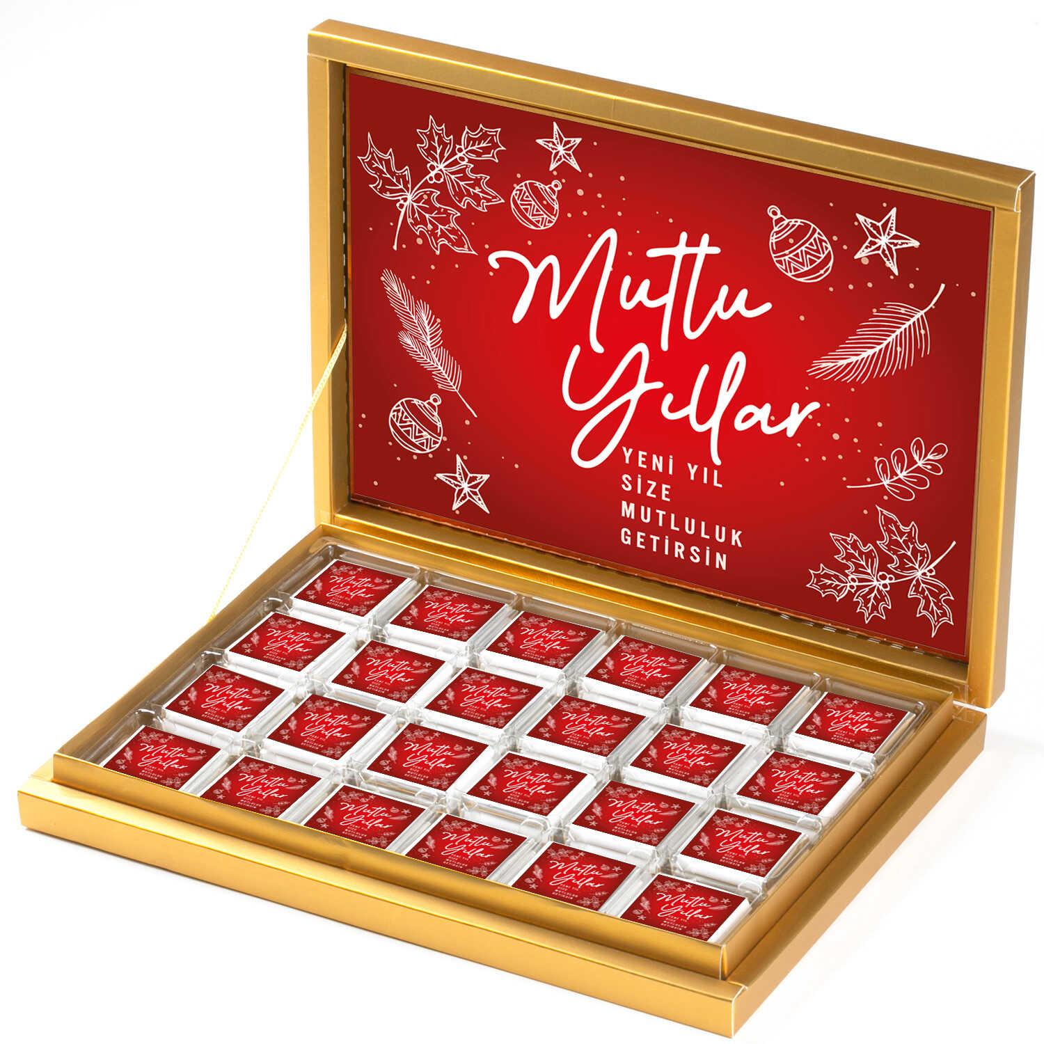 48 adet sütlü madlen çikolata (340gr) üzerine ve kapak içine  "Mutlu Yıllar" mesajı yapıştırılarak Gönderilir.