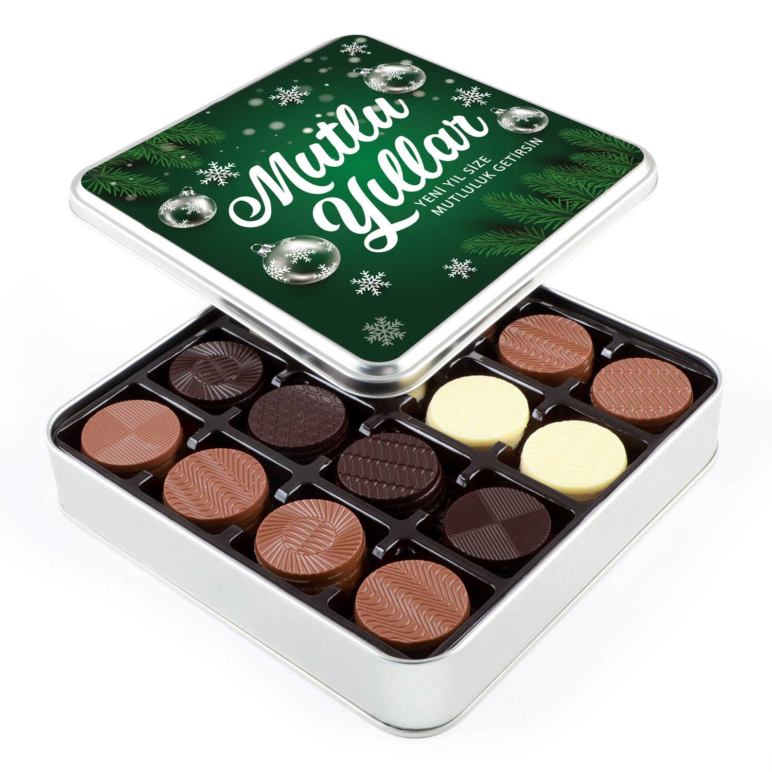 Yılbaşı Hediyesi 64 Adet Yuvarlak Madlen Çikolata (Metal Kutu) Model:2