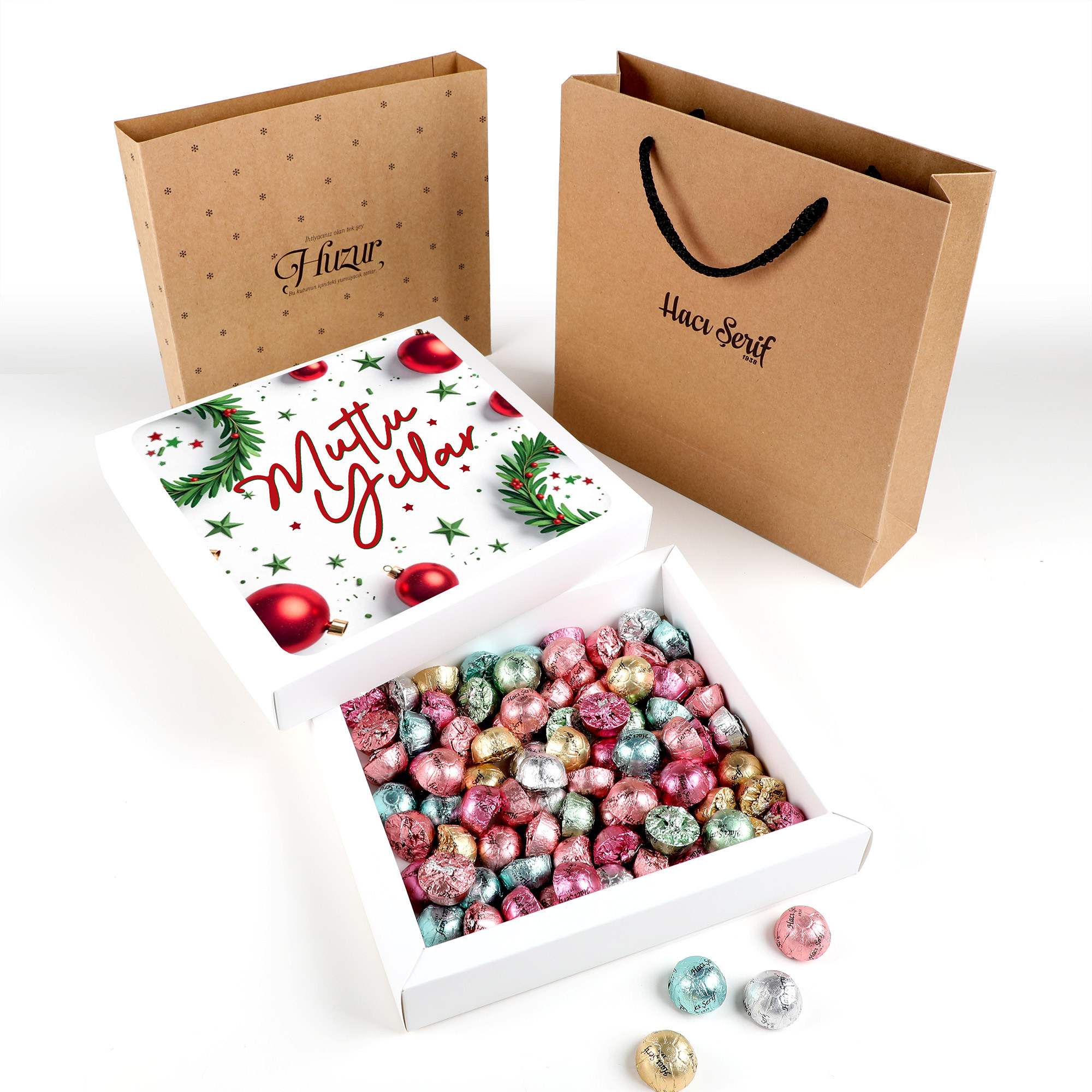 İçerik : 450g Çikolatin (ortalama74-75 adet) Üzerinde Yılbaşına özel çalışması ile birlikte gönderilir.