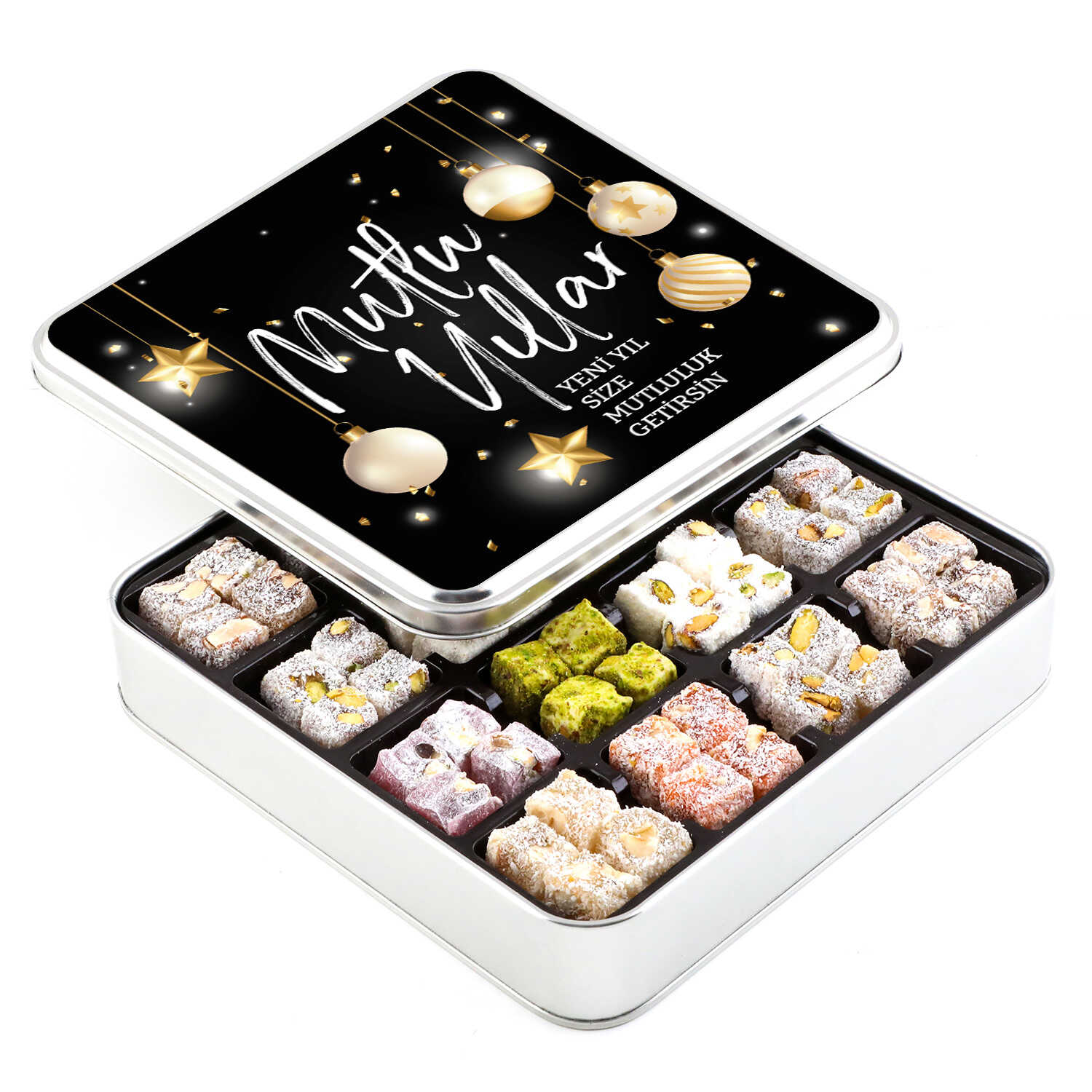 Gelince Haber VerYılbaşı Hediyesi Karışık Çifte Kavrulmuş Lokum (Metal Kutu)Model:1