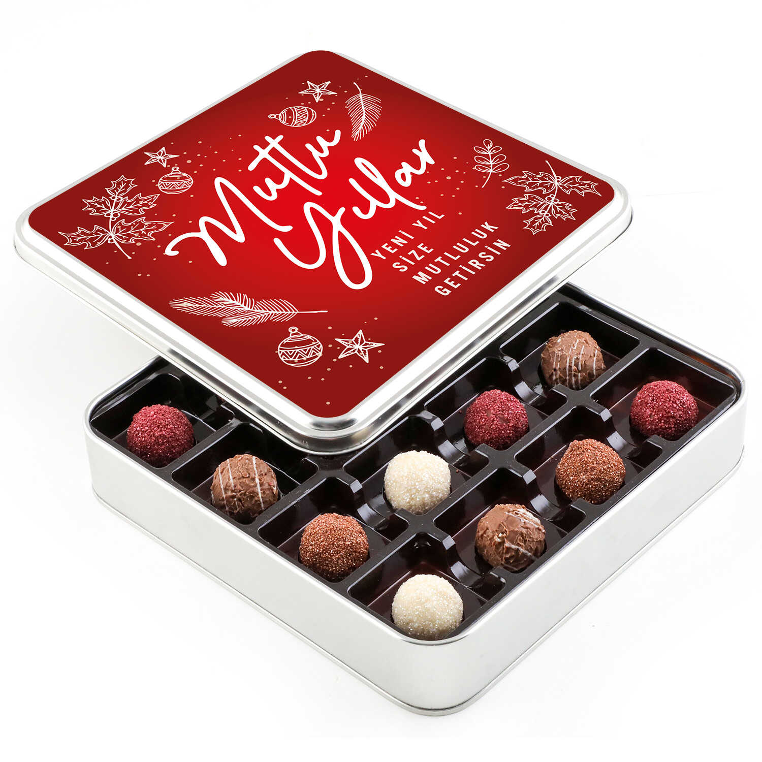 Yılbaşı Hediyesi Karışık Special Truffle Çikolata (Metal Kutu) Kırmızı