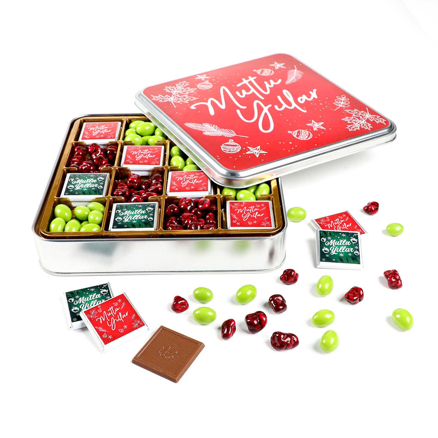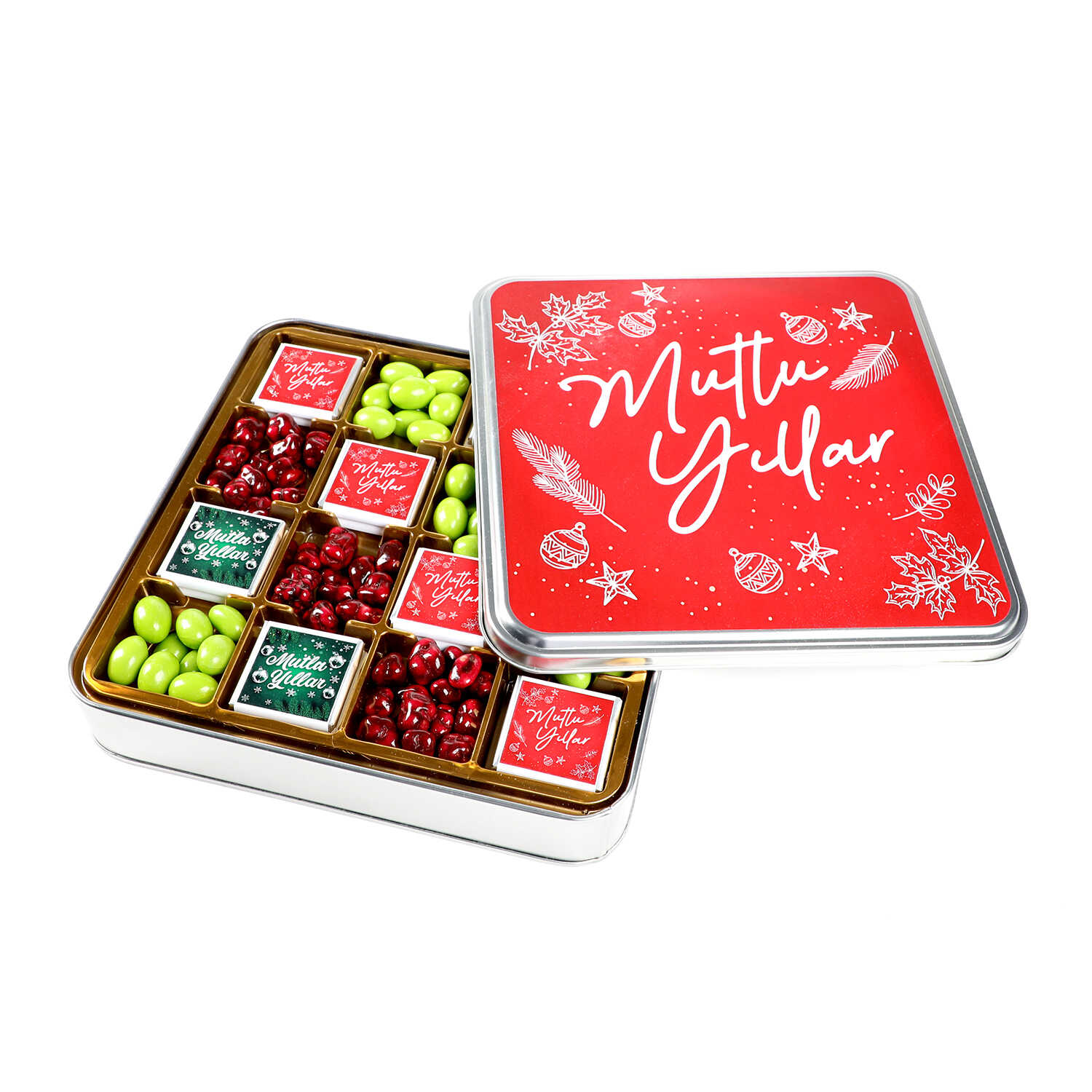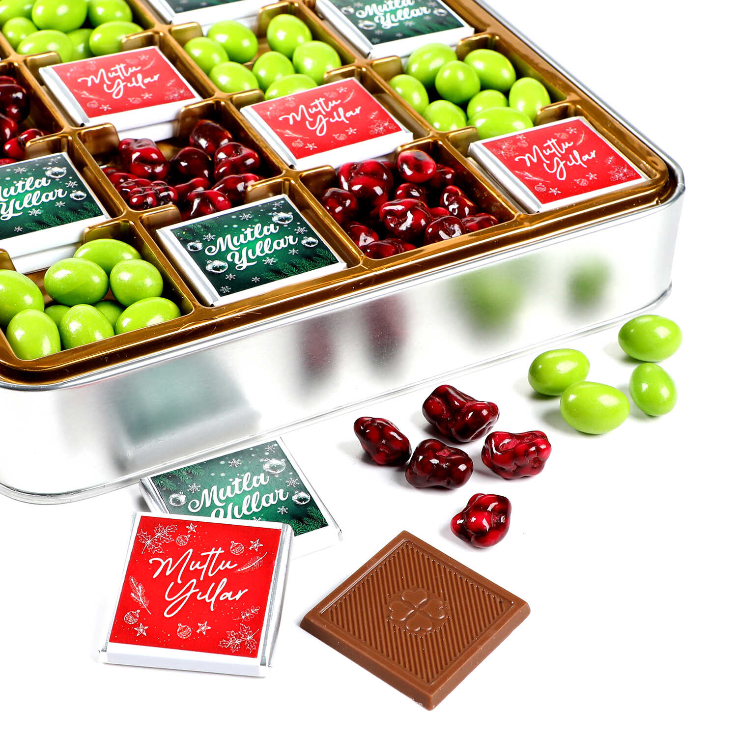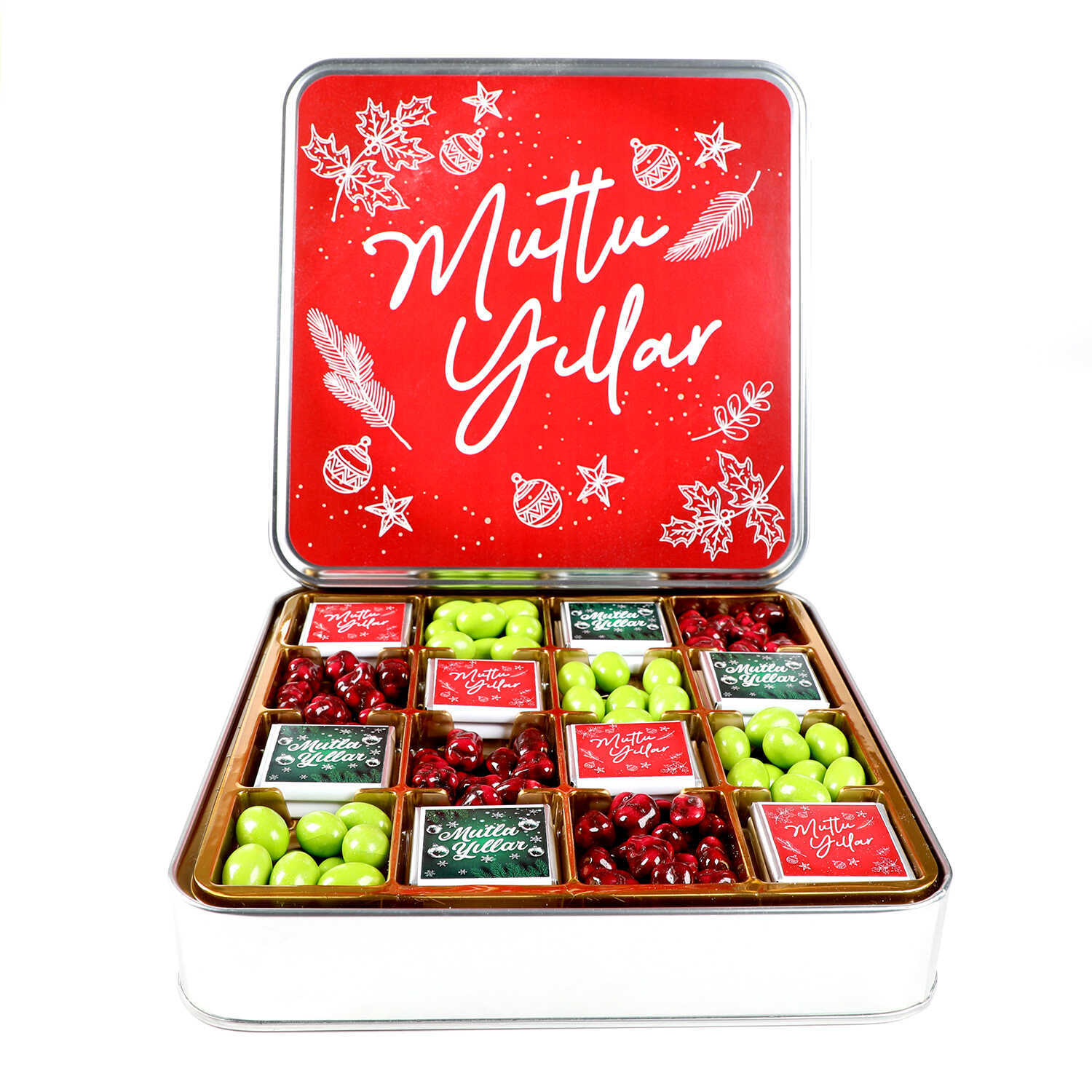 Yılbaşı Hediyesi Madlen Çikolata Böğürtlen Draje Fıstık Şekeri (Metal kutu)