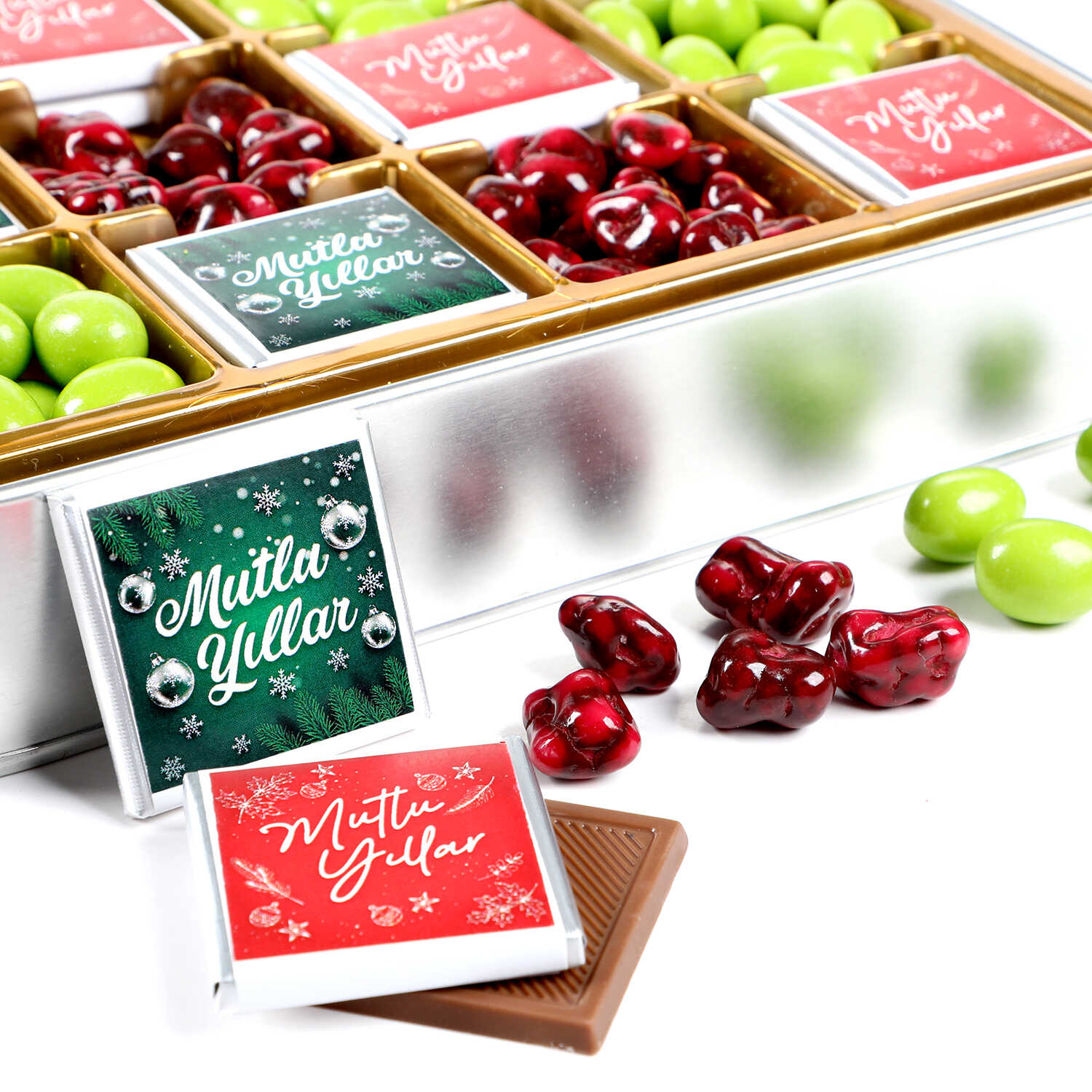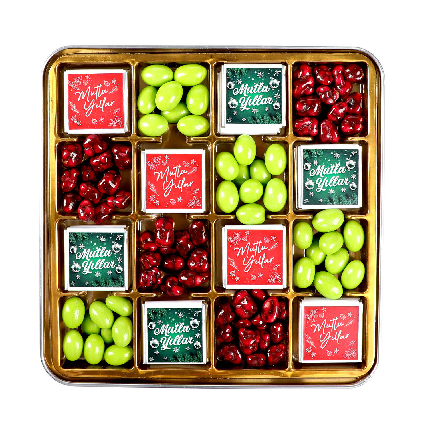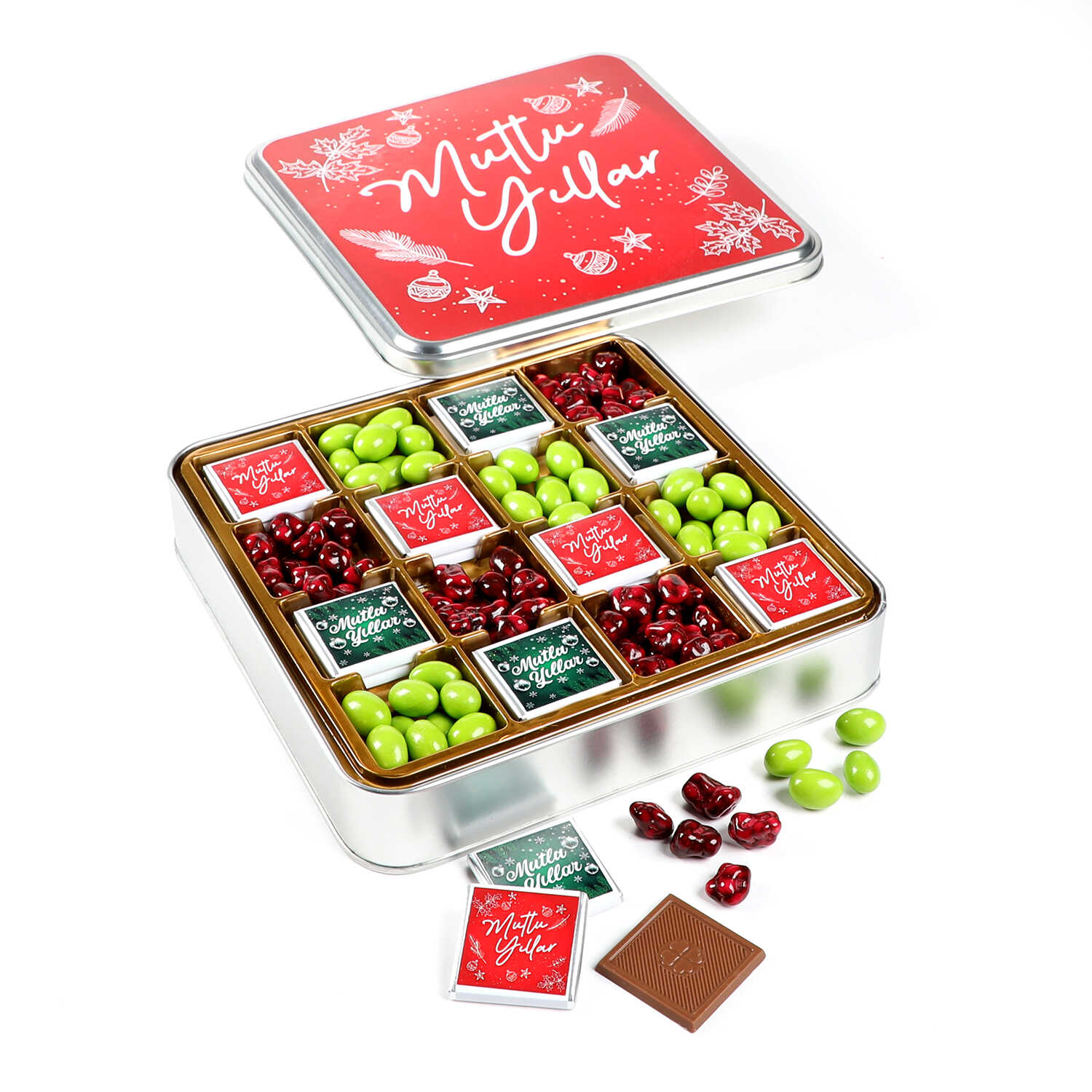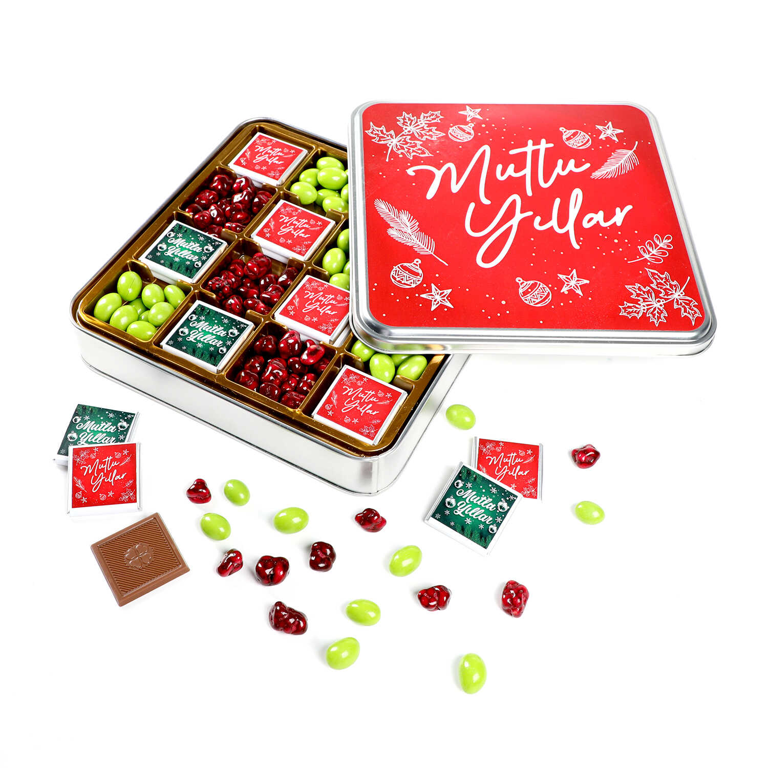 Yılbaşı Hediyesi Madlen Çikolata Böğürtlen Draje Fıstık Şekeri (Metal kutu)