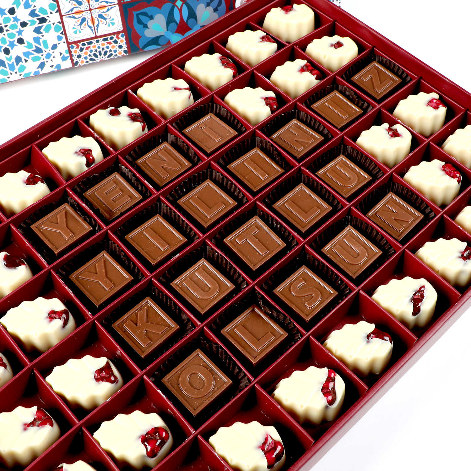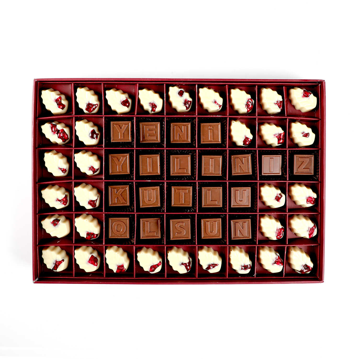 Yılbaşı Hediyesi (Yeni Yılınız Kutlu Olsun) Motif Desenli Büyük Kutuda Special ve Harf Çikolata